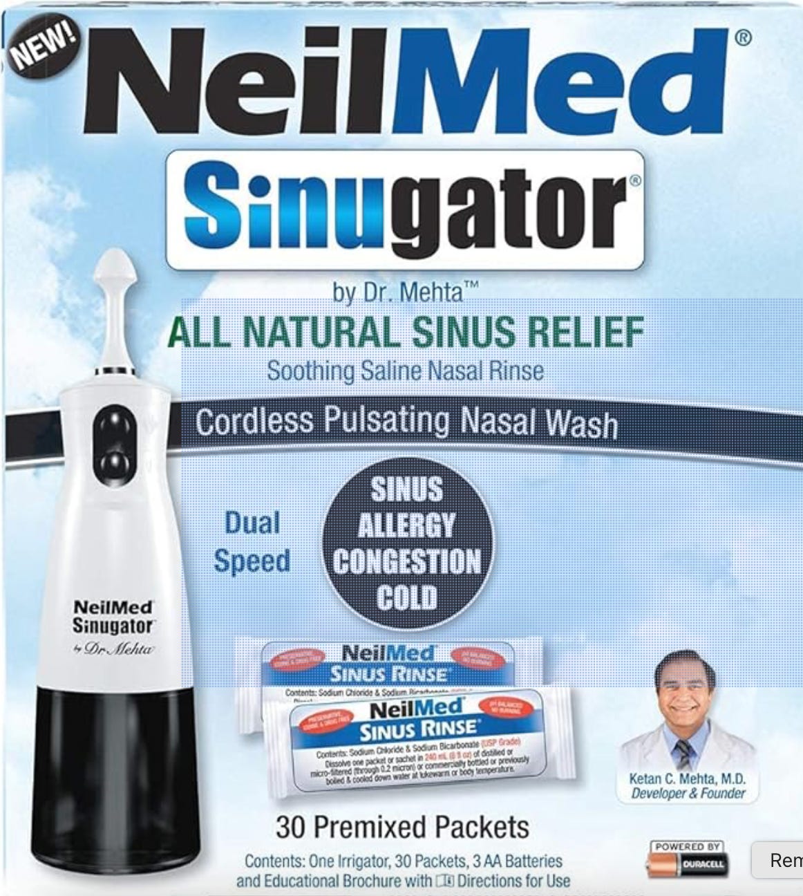 The next day, feeling weak but better, I used (maybe TMI) a NeilMed nasal lavage device, called the “Sinugator”, which is perhaps the most regrettable name in marketing history. But the product itself is also rather endearing, as Dr Ketan Mehta’s smiling face appears encouragingly on every package. “Put this in your nostril!” Dr Mehta seems, in a friendly way, to be urging.