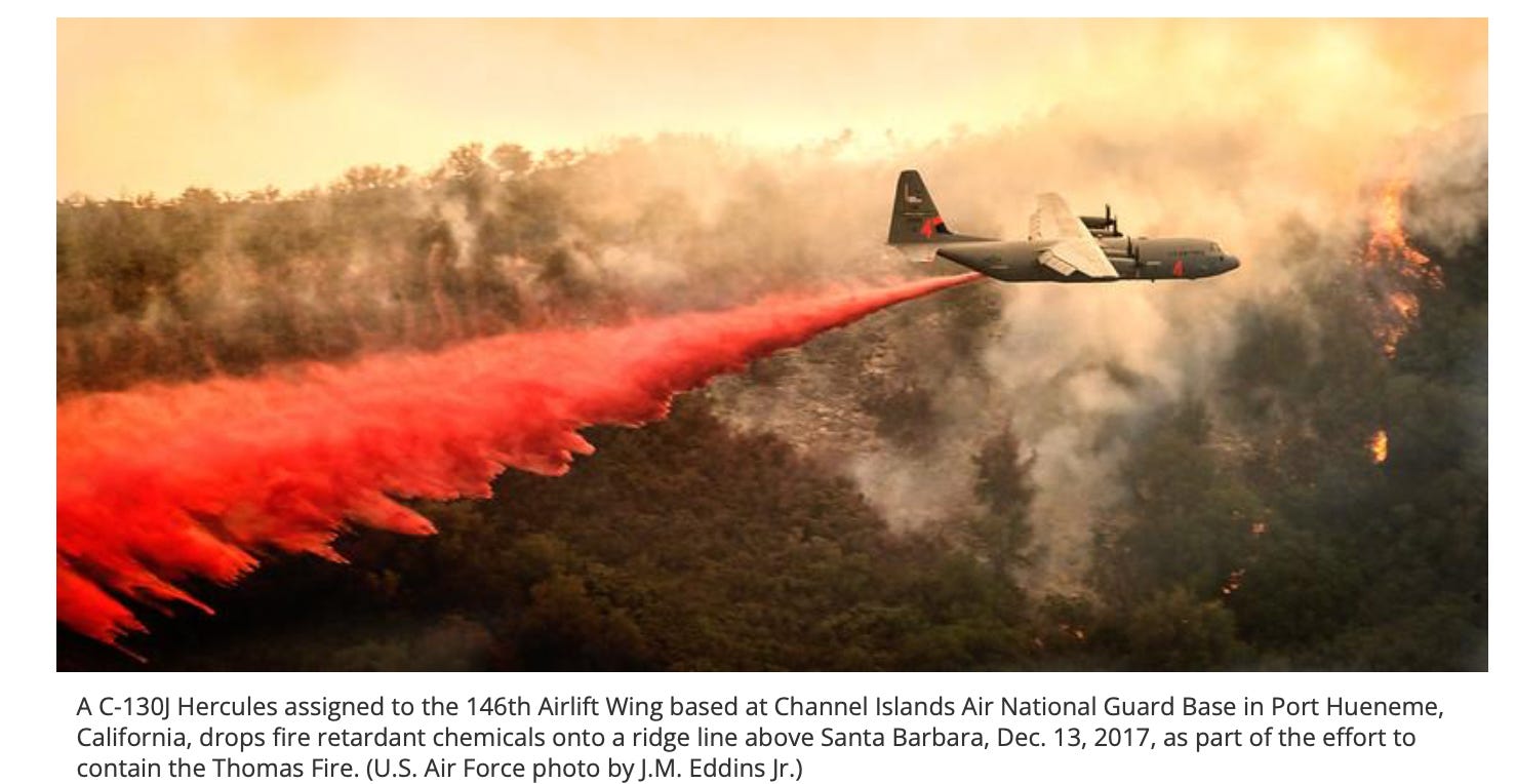 It turns out that fire-retardant chemicals have colorants added to make them visible, so firefighters can target areas, according to the USDA: