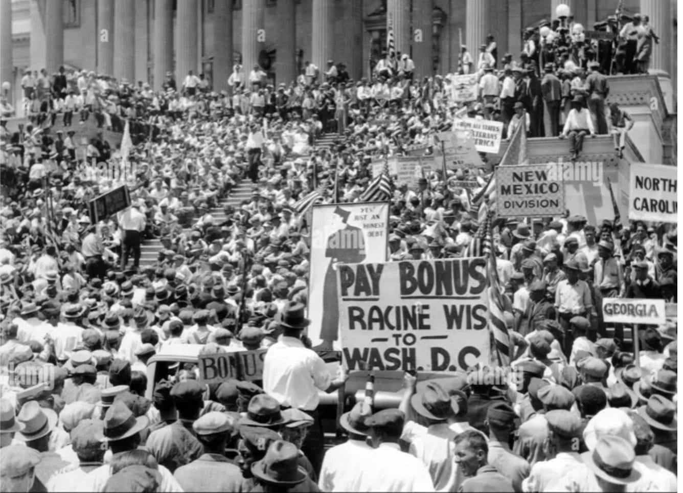 “[M]ore than 25,000 veterans and their families traveled to Washington, DC, to petition Congress and President Herbert Hoover to award them their bonus immediately. Fortunately for the marchers, Pelham Glassford, the local police chief and a veteran of the war himself, made accommodations for this influx, including the creation of an enormous camp in the Anacostia Flats […]. Glassford understood that Americans had an inherent right to assemble in Washington and petition the government for the “redress of grievances” without fear of punishment or reprisals. […]