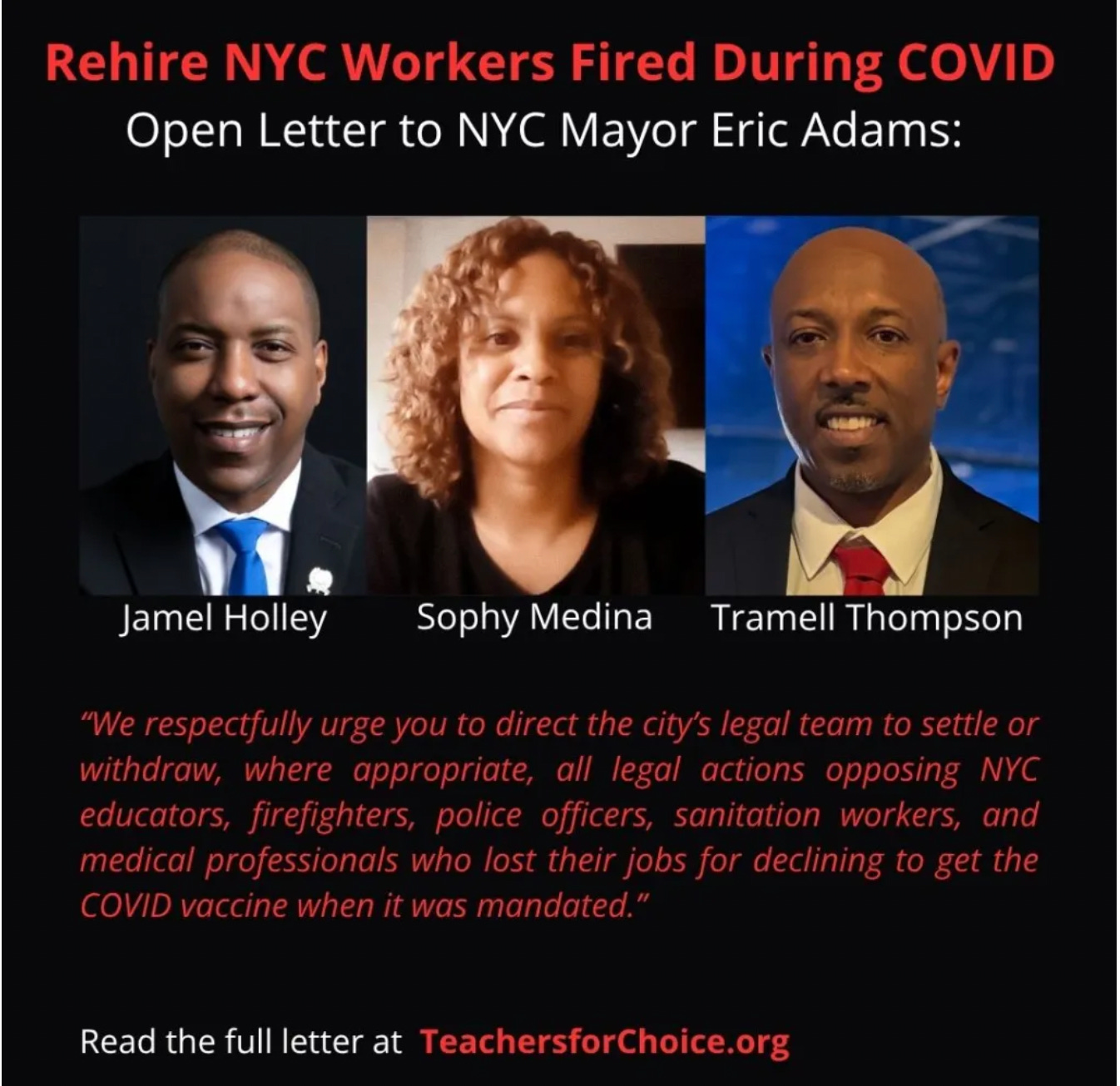 To this day, first responders in NYC who were “mandated”, do not have their jobs back. They do not have due process,. They did not get their day in court. The people on whose bodies the city runs, were betrayed.