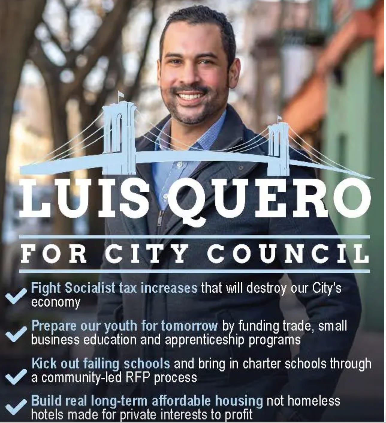 Luis Quero is another Brooklyn-born and raised next-generation leader. He is running for Brooklyn City Council, District 38. He is sort of an anti-Mamdani.