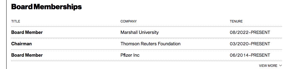Again: Reuters is conflicted in covering us, or in covering any Pfizer-related story, because of its direct ties to the board of Pfizer — ties that Reuters did not disclose in a hit piece on critics of…Pfizer: https://www.pfizer.com/people/leadership/board_of_directors/james_smith.