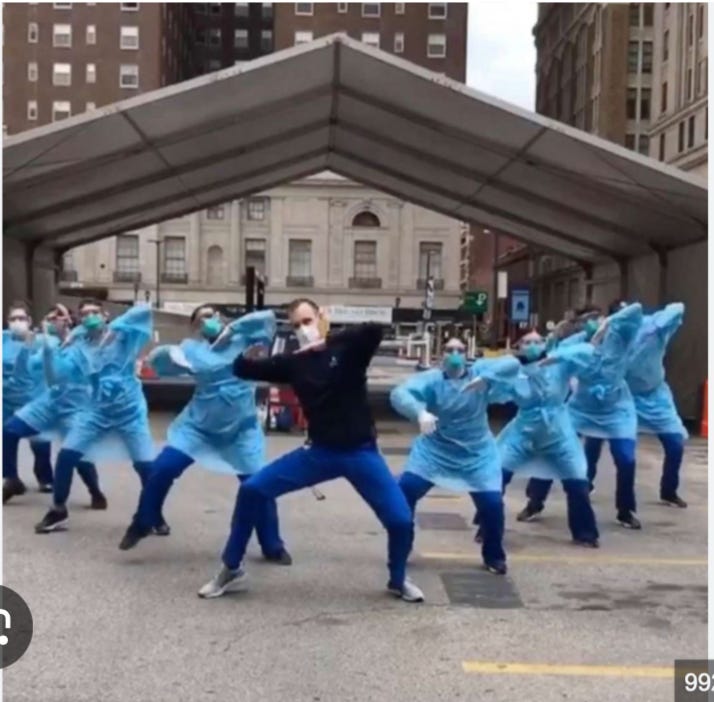 We could not dance. But, recall, the nurses danced. Millions of dollars or euros must have gone to coordinating and shooting those scores of “dancing nurses” spectacles. Why? Who invested in that elaborate phenomenon? Did anti-human group dance have a power that changed the world for the worse, especially while sacred dance and song were banned?