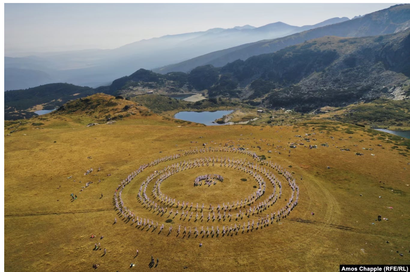The group was led by a Bulgarian teacher, who had trained in a mystical tradition founded in 1897 by Bulgarian theologian Peter Deunov. (This group still gathers annually in August in the Rila mountains, to bring “light and peace” to the world via their “Bulgarian tai chi” practice.) This teacher taught the group of New York women at the event space, “paneurhythmic” steps and movements, in a circle dance.