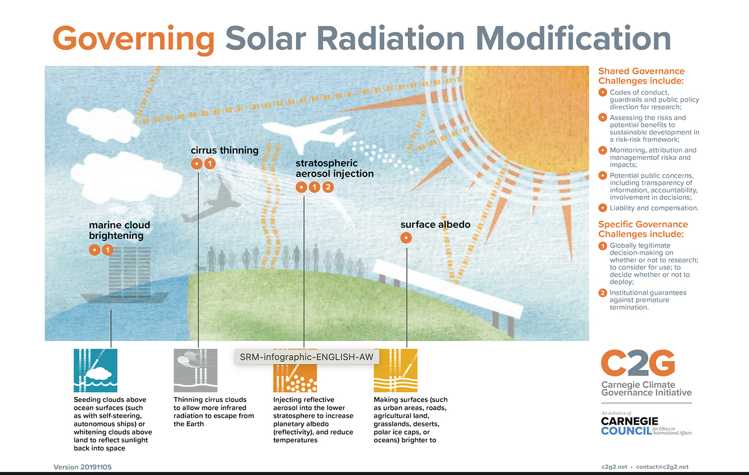Harvard, among other universities, funds it: the Harvard Solar Geoengineering Program, for just one example. Harvard also has a research investment group, the Keutsch Group, which funds the evil Dr David Keith’s program called ScopEx, or the “Stratospheric Controlled Perturbation Experiment.” (This project has been used to spray sulphur dioxide over Arizona from a Native American reservation. The venue was important as it allowed the scientists to circumvent laws against this in the United States.) The Carnegie Foundation also heavily funds geoengineering technologies, and exerts pressure for global governance (meaning, legalization): The Carnegie Climate Governance Initiative pushed for both Solar Radiation Modification and “Stratospheric Aerosol Injection.” The Foundation’s website is full of cartoon graphics showing how their efforts to spray pollutants and toxins in our skies, will save a sad planet, and make it happy.
