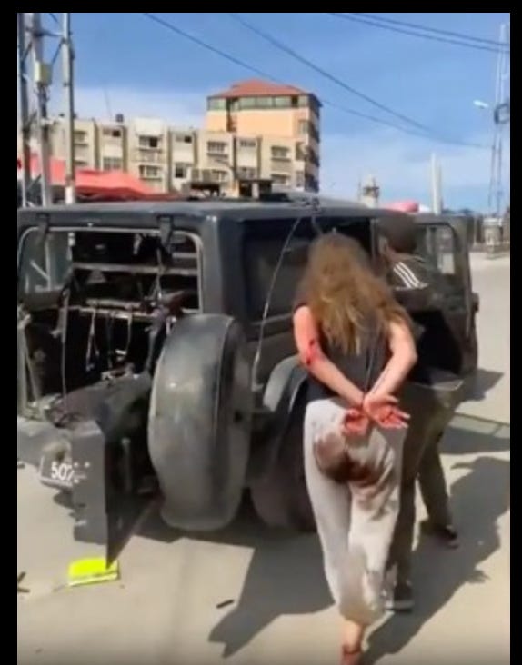 So now the children of the generation who colored in the scimitars, is the generation of young Palestinians that is celebrating the dead, broken, naked body of one of the Israeli women hostages, a body that was dumped in the back of a truck, surrounded by gleeful, armed, cheering men.