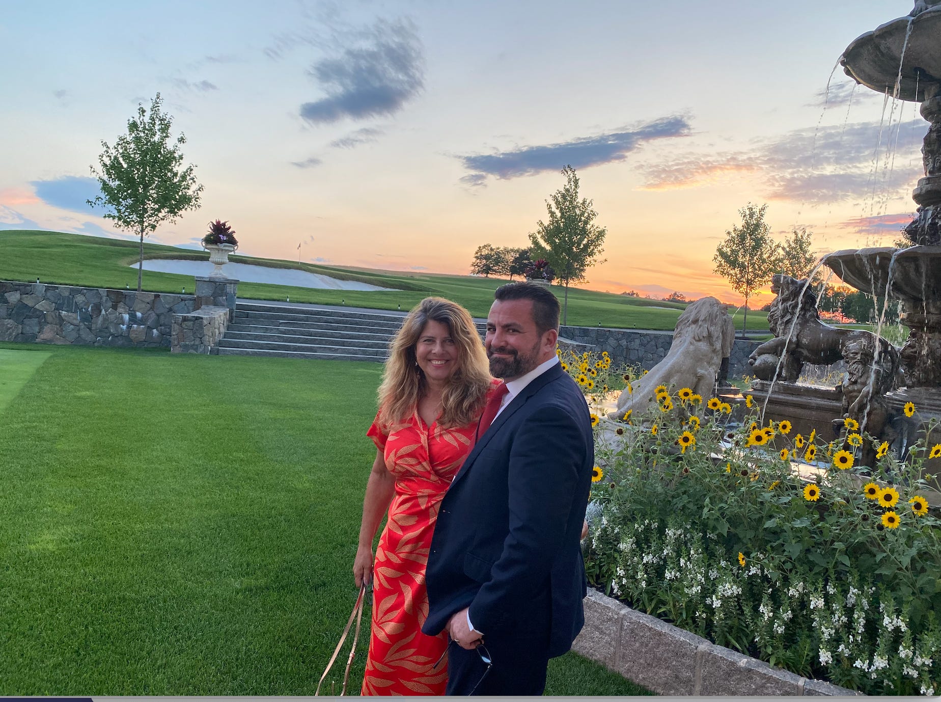 I went to take a picture with Brian. We stood against a beautiful formal fountain; against the profusion of dahlias and ivy that clustered around it; as a reddish-gold sun set over the pristine, elegiac landscape.
