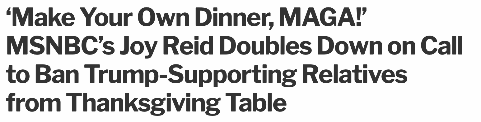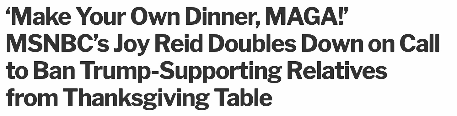 Or that highly-paid influencers on TikTok or Instagram whipped up family division and estrangement; that they told young women not to have children, and that they told young adults to divorce their parents, and that former superstars such as MSNBC’s Joy Reid told people who voted for Harris to shun having Thanksgiving with relatives who voted for Trump.