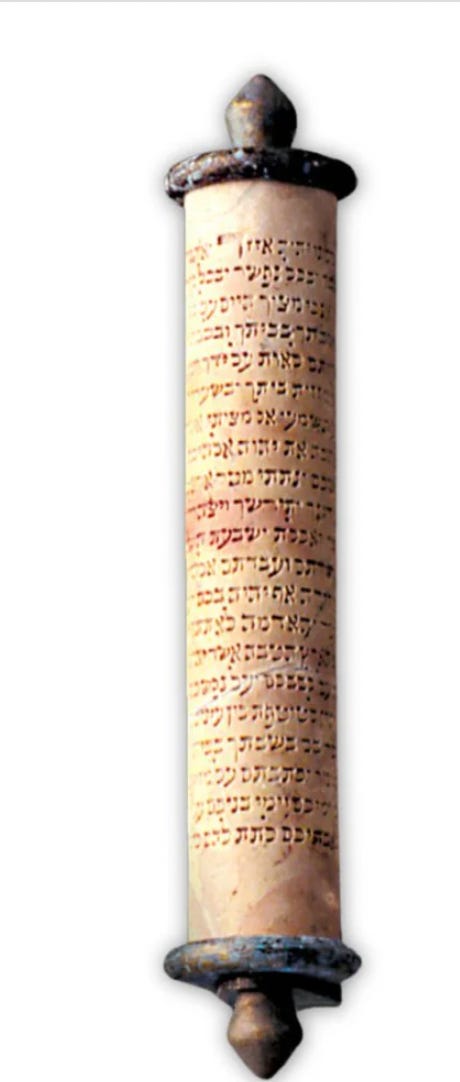 “The Mezuzah scroll contains two paragraphs from the Torah. (Deuteronomy 6:4-9 and 11:13-21).